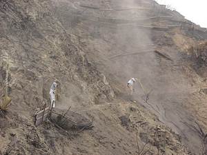 The City of Los Angeles Fire Department’s Special Operations Division and the Santa Monica Mountains Conservancy noted that the current fire potential is extremely high and unprecedented. The LA City Fire Department Special Operations Division, with the permission of the Conservancy, took “fire life safety” actions to protect the community from wildfire this coming season. The Fire Department’s goal was to re-blade pre-existing fuel breaks (ridges) that run perpendicular to the northeast Santa Ana winds to a width of at least 50 feet wide. While we warmly refer to them as ridges, the fire authorities cut them decades ago to serve as fuel breaks, yet they have not been re-bladed in approximately 20 years. Should fire occur, a DC10 will be flown along the fire-side of the ridges and drop a swath of fire retardant 1/4 mile long per each pass. Fire crews and helicopters will be positioned to fight fire on the leeward side of the fuel breaks, if it is deemed safe.
