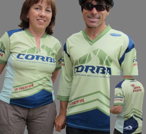 Our new fashion apparel that debuted at the Fat Tire Fest is now available for purchase online at the CORBA Store. Until December 31, 2010, shipping is free, so order now and save yourself a few bucks! To help keep your riding green, the short-sleeve jerseys are made with fabric that includes recycled material and the T-shirts are printed on unbleached heavy cotton. Go to the online CORBA Store to place your order today!